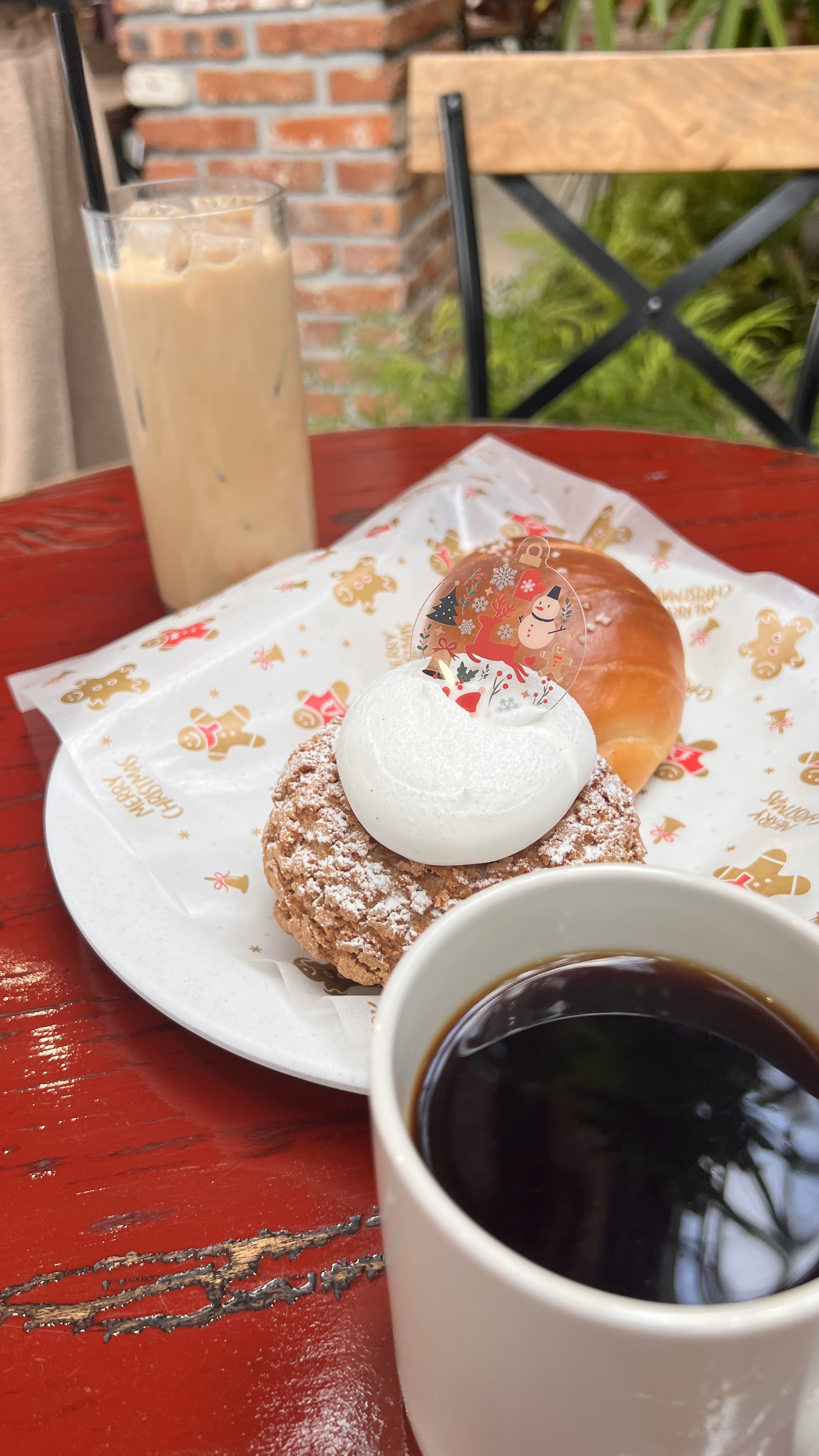이 와중에 저희가 먹은 건 소금빵과 소보로 생크림빵이었는데, 소금빵은 겉은 바게트처럼 짭조름한데 속은 촉촉하고 쫄깃해서 아메리카노랑 궁합이 잘맞았고, 소보로 생크림빵은 신선하고 부드러운 생크림이 듬뿍 올라가 있는데 과하게 달지 않고 깔끔해서 아이스 라떼랑 정말 맛있게 먹었습니다.