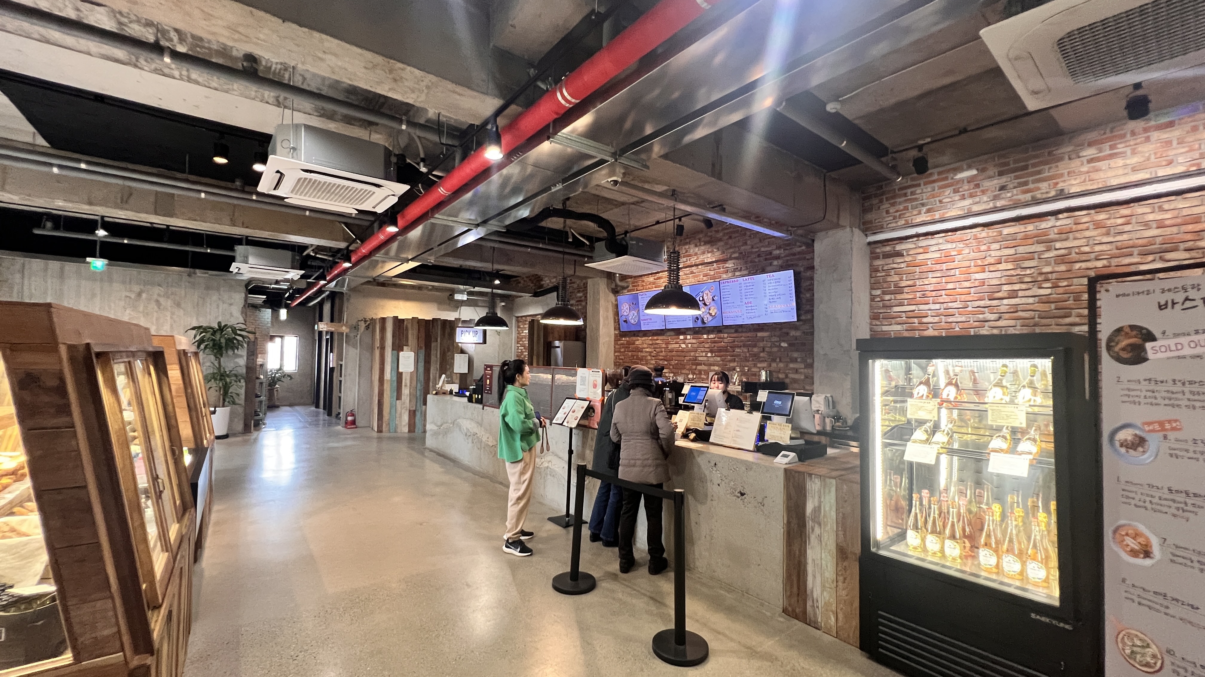 이곳 대형 카페를 찾는 가장 큰 즐거움이 바로 이겁니다. 갓 구워낸 빵들이 뿜어내는 고소하고 달콤한 향이 코끝을 간지럽히고, 진열된 다양한 베이커리 종류가 눈을 호강시켜 주죠.